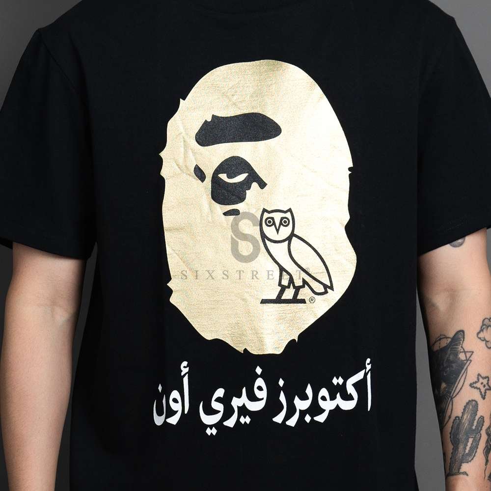 BAPE Tee x OVO Ape Head Gold Black